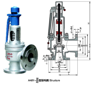 A48Y型適用于工作溫度≤350℃的蒸汽、空氣等介質的設備和管路上,作為超壓保護裝置。