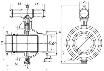 Q647H氣動卸灰球閥主要外形尺寸
